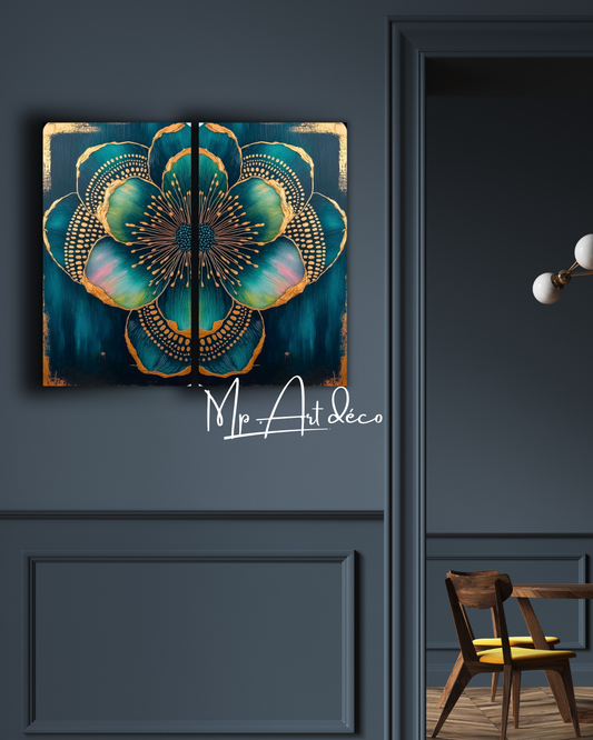 Tableau Floral bleu or