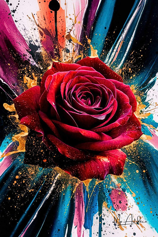 Tableau explosion rose rouge