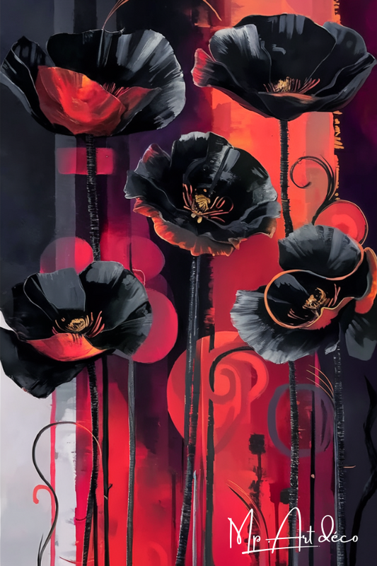 Tableau coquelicots noir et rouge